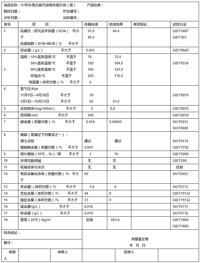 高辛烷值汽油組分檢測報告94.4